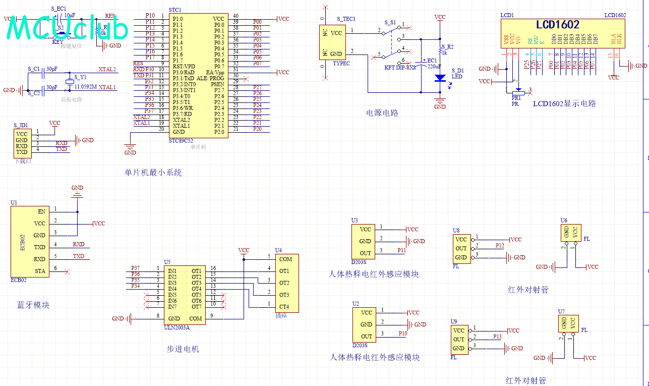 注意:原理图只是画出了模块的引脚图,而并不是模块的内部结构原理图