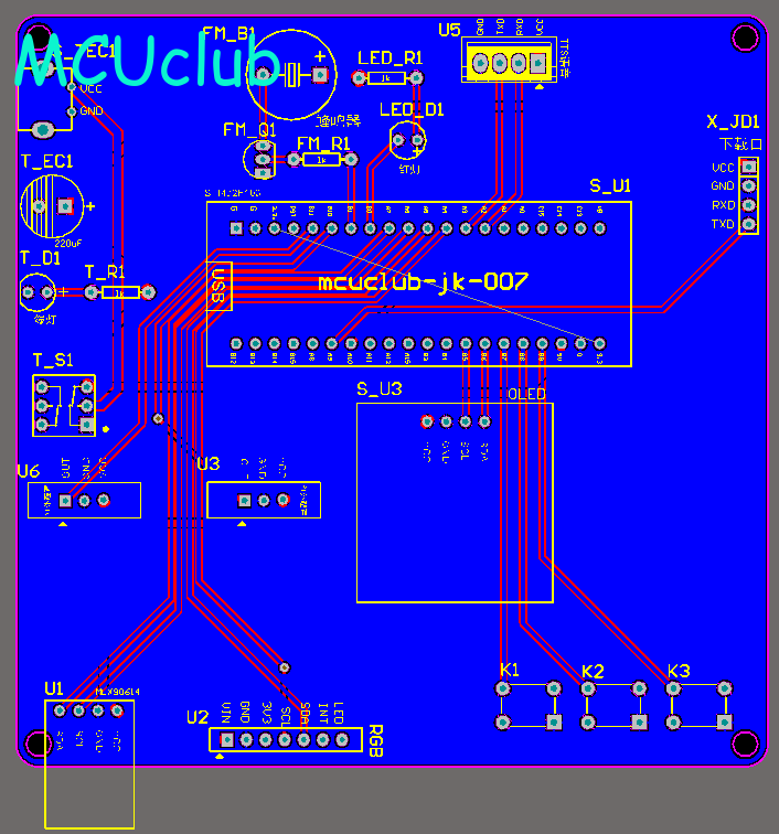 注意:PCB图中间有一个项目编号,隐藏在单片机底座下,插入单片机后不会看到。如果想截没有项目编号的PCB图,可在PCB源文件中点击删除。另外,如果想在实物PCB板上加自己的信息(比如日期、学号、姓名等),可联系客服。
