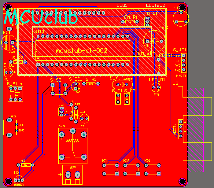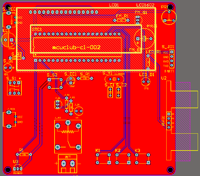 注意:PCB图中间有一个项目编号,隐藏在单片机底座下,插入单片机后不会看到。如果想截没有项目编号的PCB图,可在PCB源文件中点击删除。另外,如果想在实物PCB板上加自己的信息(比如日期、学号、姓名等),可联系客服。