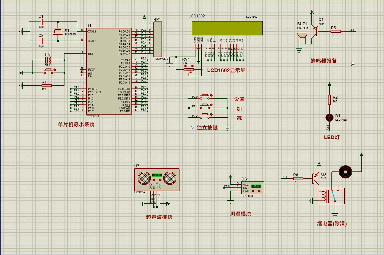 1、通过DS18B20测量温度,给超声波作为温度补偿