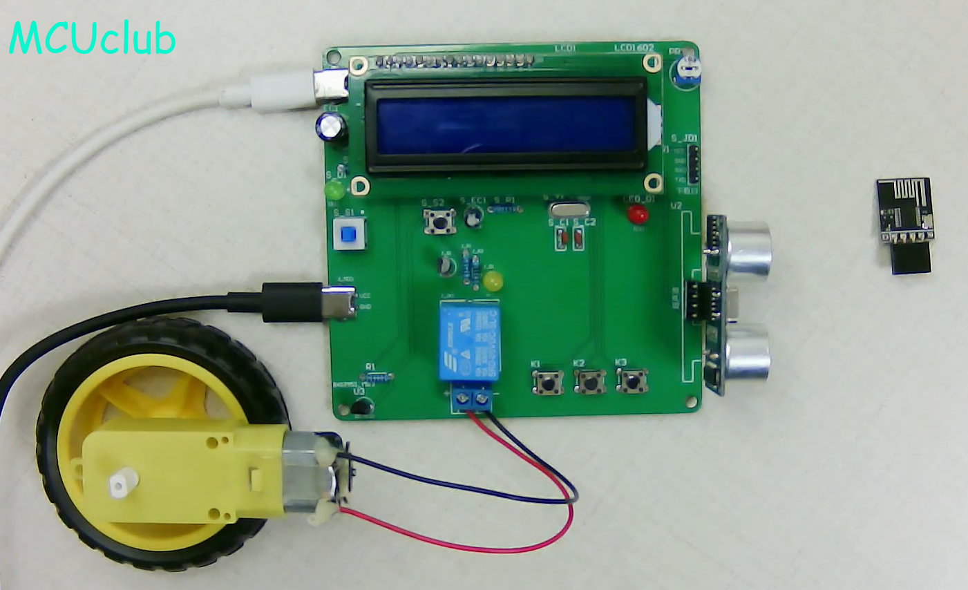 2、通过超声波测量前方障碍物,如果距离值在设置的最大值和最小值之间,则声光报警,如果小于设置最小值,则立即停车(继电器控制电机模拟)