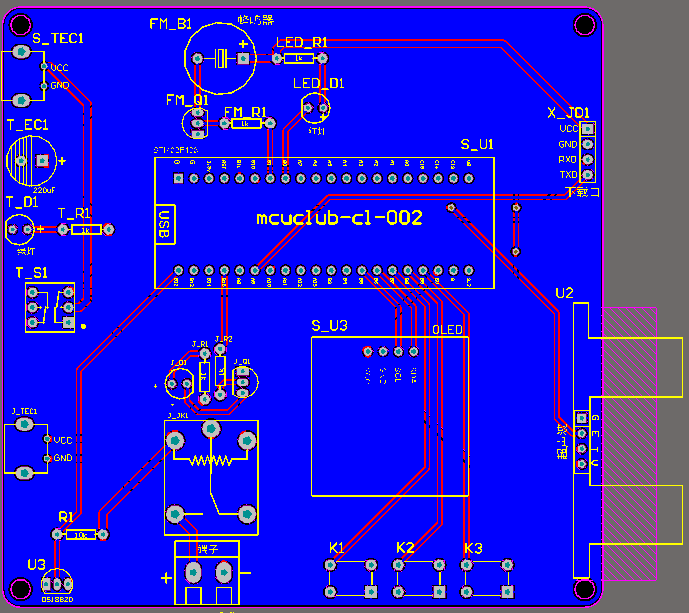 注意:PCB图中间有一个项目编号,隐藏在单片机底座下,插入单片机后不会看到。如果想截没有项目编号的PCB图,可在PCB源文件中点击删除。另外,如果想在实物PCB板上加自己的信息(比如日期、学号、姓名等),可联系客服。