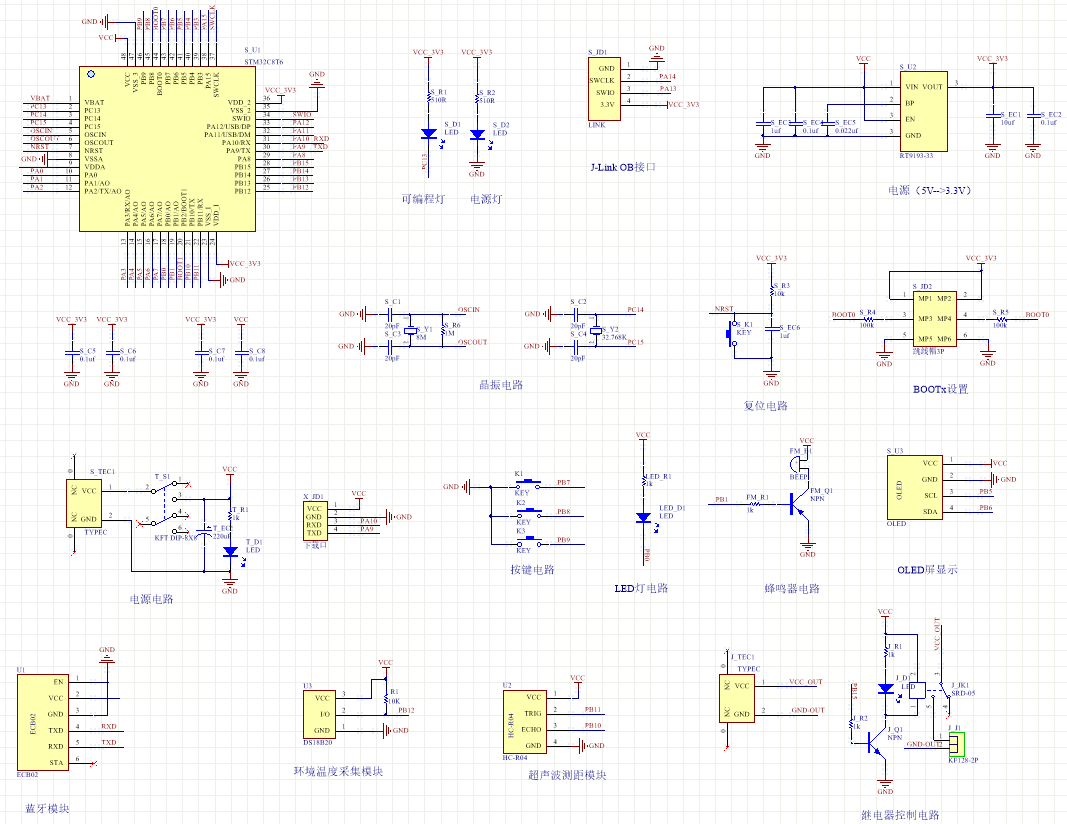PCB图是由原理图导出,封装很大一部分都是作者自己绘制,不提供封装库,只提供连接好的源文件,可以直接在嘉立创进行打板。两层板,上下覆铜接地。