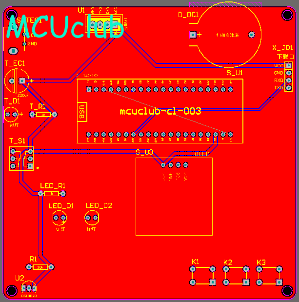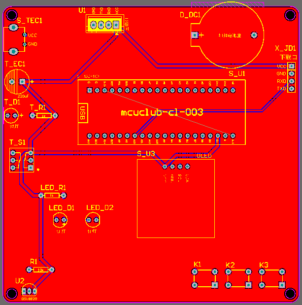 注意:PCB图中间有一个项目编号,隐藏在单片机底座下,插入单片机后不会看到。如果想截没有项目编号的PCB图,可在PCB源文件中点击删除。另外,如果想在实物PCB板上加自己的信息(比如日期、学号、姓名等),可联系客服。
