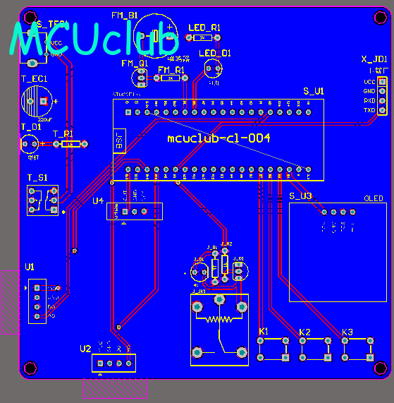 注意:PCB图中间有一个项目编号,隐藏在单片机底座下,插入单片机后不会看到。如果想截没有项目编号的PCB图,可在PCB源文件中点击删除。另外,如果想在实物PCB板上加自己的信息(比如日期、学号、姓名等),可联系客服。