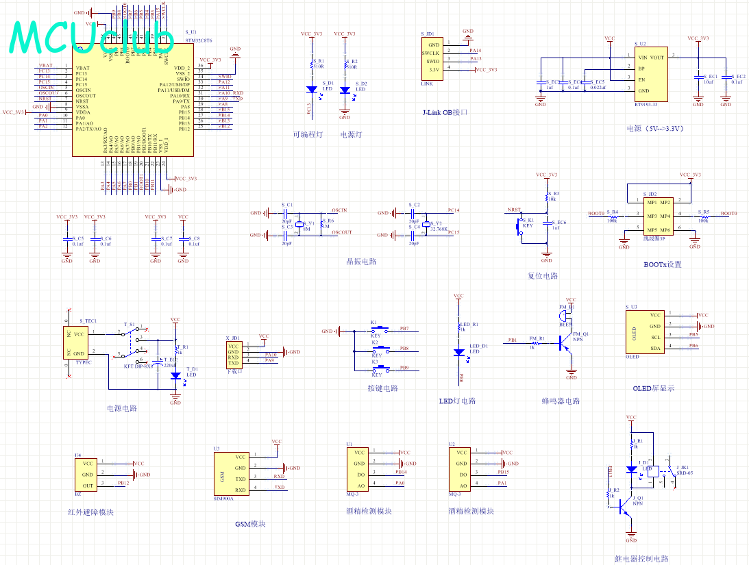注意:原理图只是画出了模块的引脚图,而并不是模块的内部结构原理图