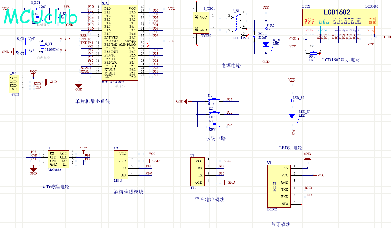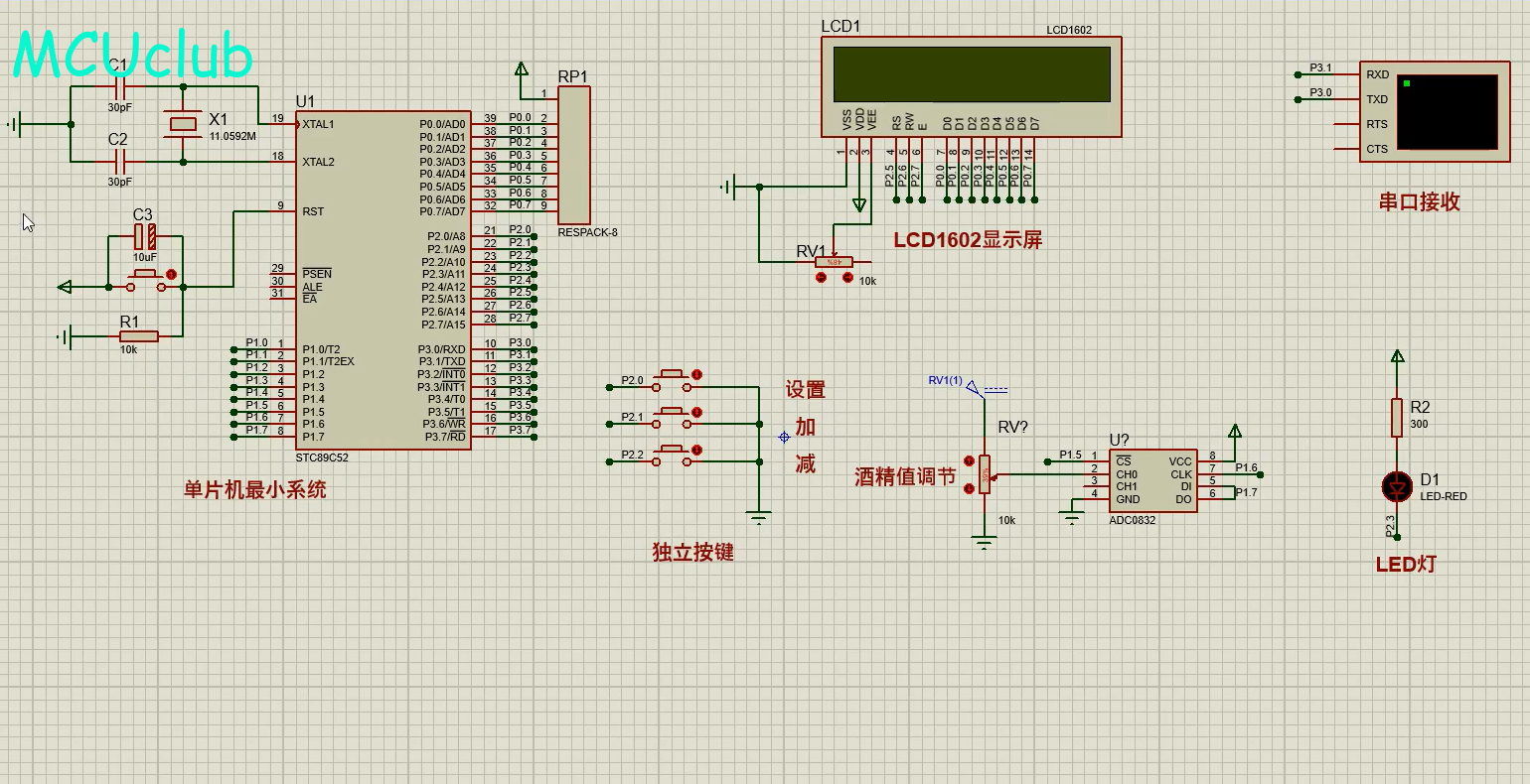 Keywords: alcohol detection; Sound and light alarm; LCD1602 liquid crystal display; STC89C52