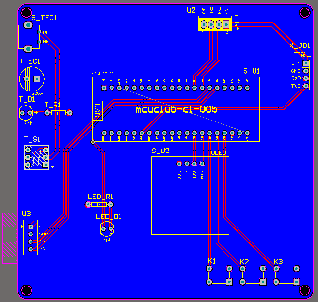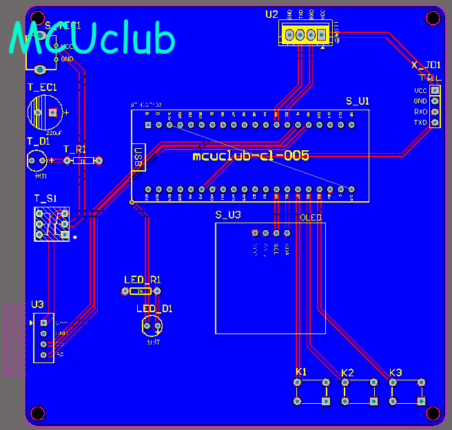 注意:PCB图中间有一个项目编号,隐藏在单片机底座下,插入单片机后不会看到。如果想截没有项目编号的PCB图,可在PCB源文件中点击删除。另外,如果想在实物PCB板上加自己的信息(比如日期、学号、姓名等),可联系客服。