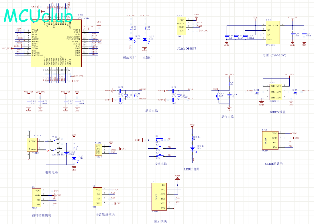 注意:原理图只是画出了模块的引脚图,而并不是模块的内部结构原理图