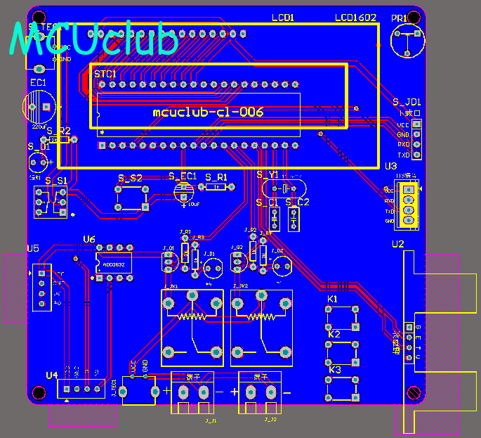 注意:PCB图中间有一个项目编号,隐藏在单片机底座下,插入单片机后不会看到。如果想截没有项目编号的PCB图,可在PCB源文件中点击删除。另外,如果想在实物PCB板上加自己的信息(比如日期、学号、姓名等),可联系客服。