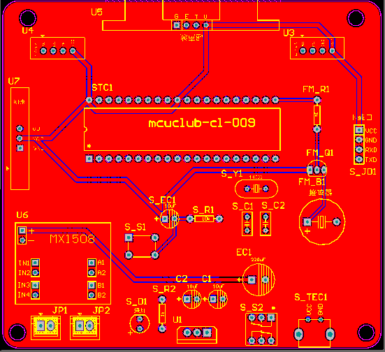 注意:PCB图中间有一个项目编号,隐藏在单片机底座下,插入单片机后不会看到。如果想截没有项目编号的PCB图,可在PCB源文件中点击删除。另外,如果想在实物PCB板上加自己的信息(比如日期、学号、姓名等),可联系客服。