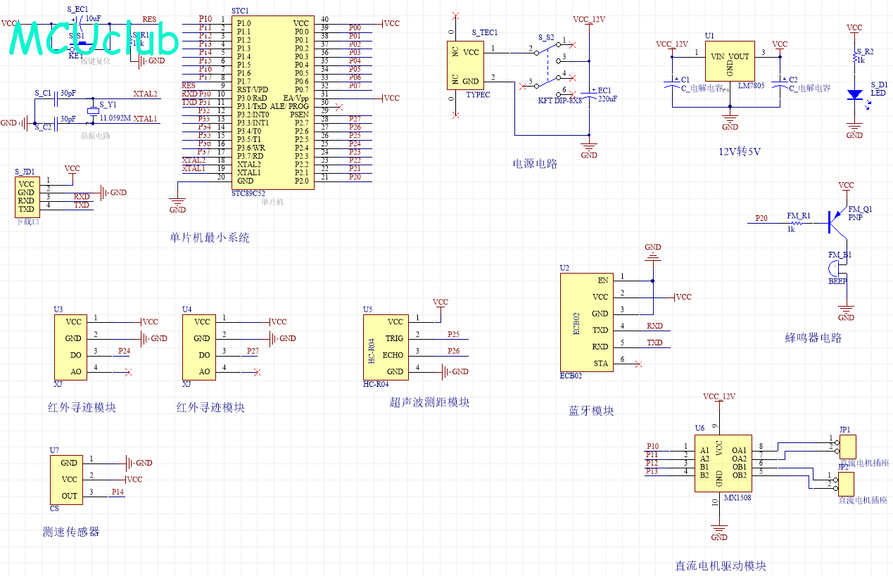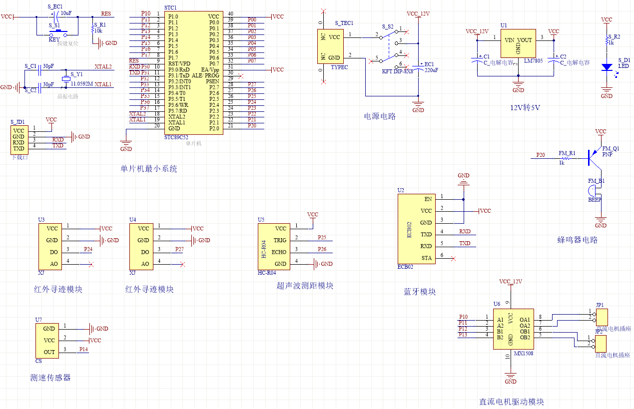注意:原理图只是画出了模块的引脚图,而并不是模块的内部结构原理图