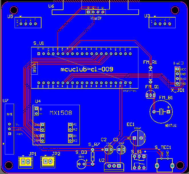 PCB图是由原理图导出,封装很大一部分都是作者自己绘制,不提供封装库,只提供连接好的源文件,可以直接在嘉立创进行打板。两层板,上下覆铜接地。