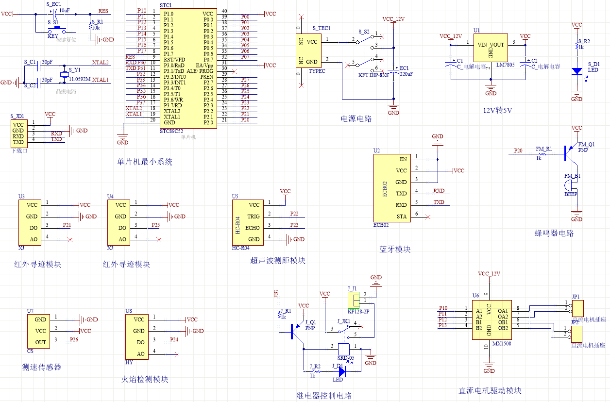 注意:原理图只是画出了模块的引脚图,而并不是模块的内部结构原理图