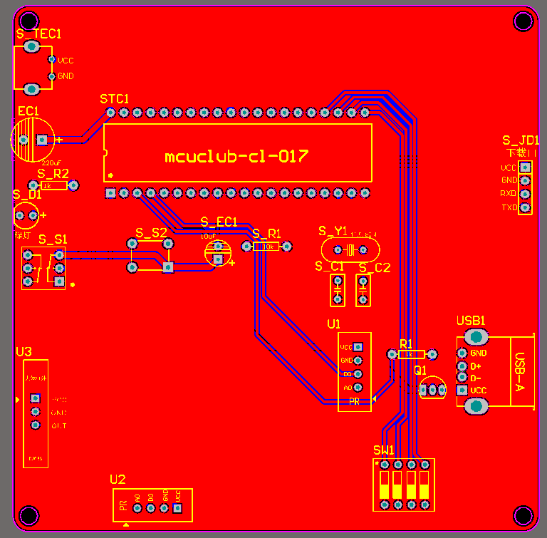 注意:PCB图中间有一个项目编号,隐藏在单片机底座下,插入单片机后不会看到。如果想截没有项目编号的PCB图,可在PCB源文件中点击删除。另外,如果想在实物PCB板上加自己的信息(比如日期、学号、姓名等),可联系客服。