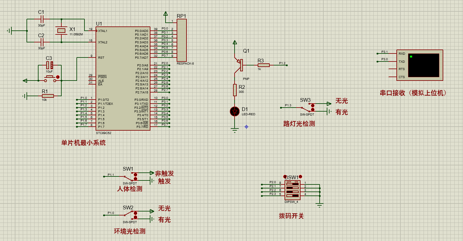 关键词:STC89C52单片机;路灯;光照检测;人体检测;自动控制