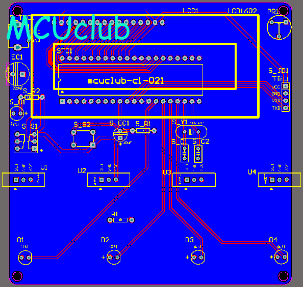 注意:PCB图中间有一个项目编号,隐藏在单片机底座下,插入单片机后不会看到。如果想截没有项目编号的PCB图,可在PCB源文件中点击删除。另外,如果想在实物PCB板上加自己的信息(比如日期、学号、姓名等),可联系客服。