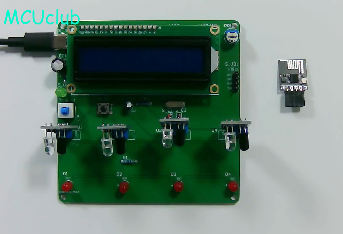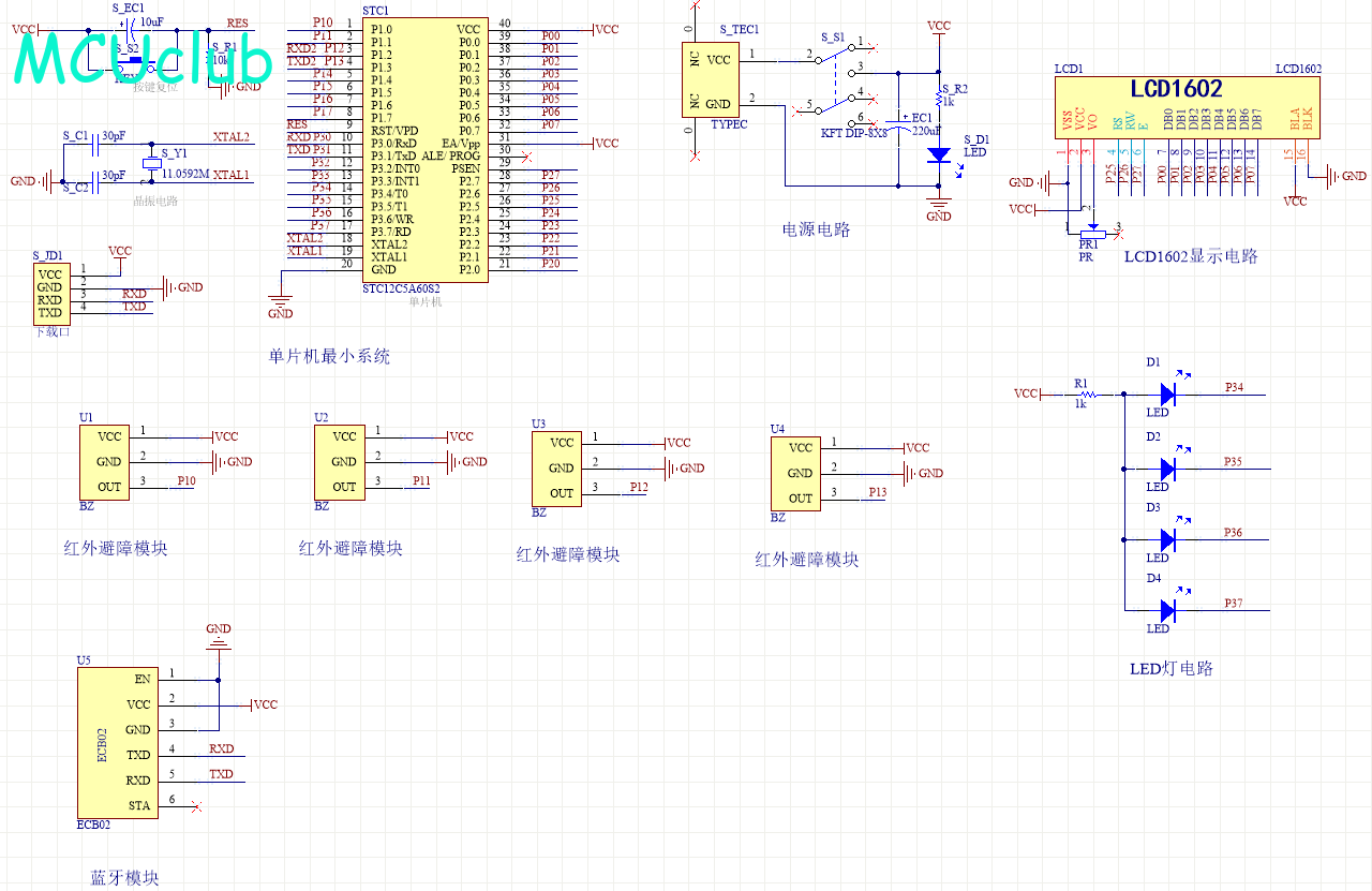 1、通过4个红外避障管检测停车位是否有车,有车时,相应红色LED灯亮