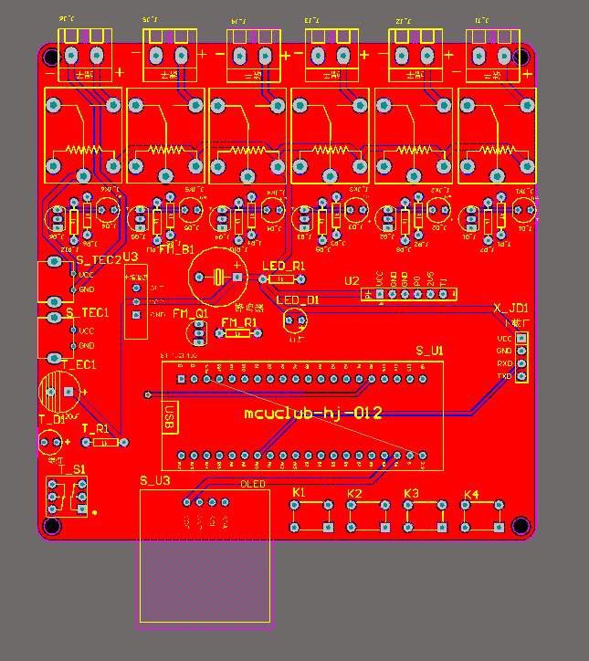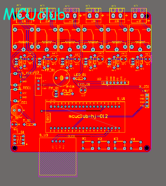 注意:PCB图中间有一个项目编号,隐藏在单片机底座下,插入单片机后不会看到。如果想截没有项目编号的PCB图,可在PCB源文件中点击删除。另外,如果想在实物PCB板上加自己的信息(比如日期、学号、姓名等),可联系客服。