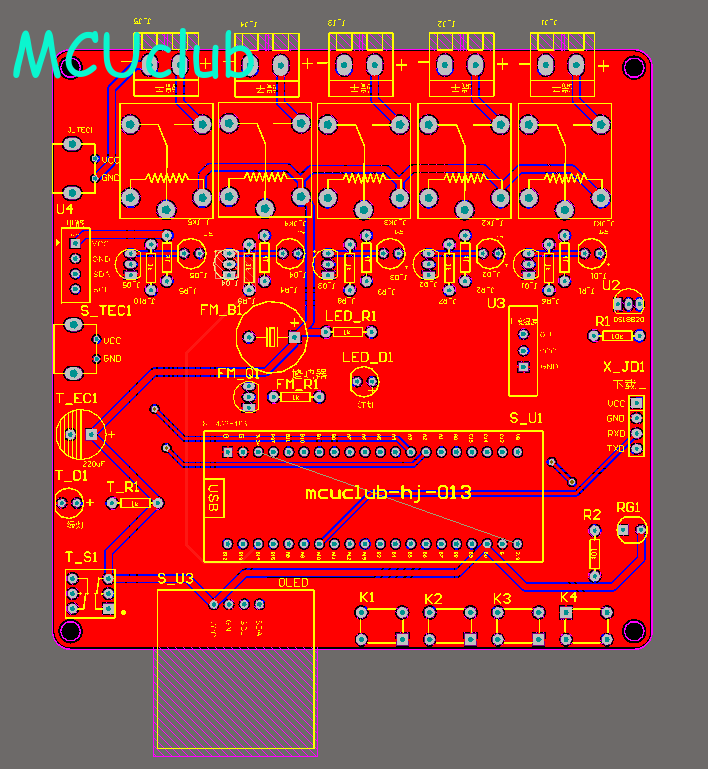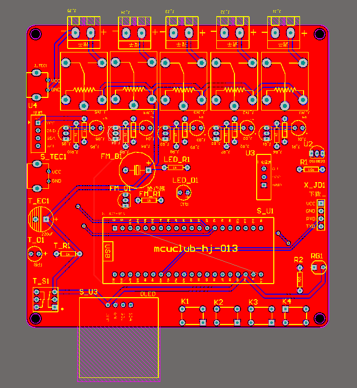 注意:PCB图中间有一个项目编号,隐藏在单片机底座下,插入单片机后不会看到。如果想截没有项目编号的PCB图,可在PCB源文件中点击删除。另外,如果想在实物PCB板上加自己的信息(比如日期、学号、姓名等),可联系客服。