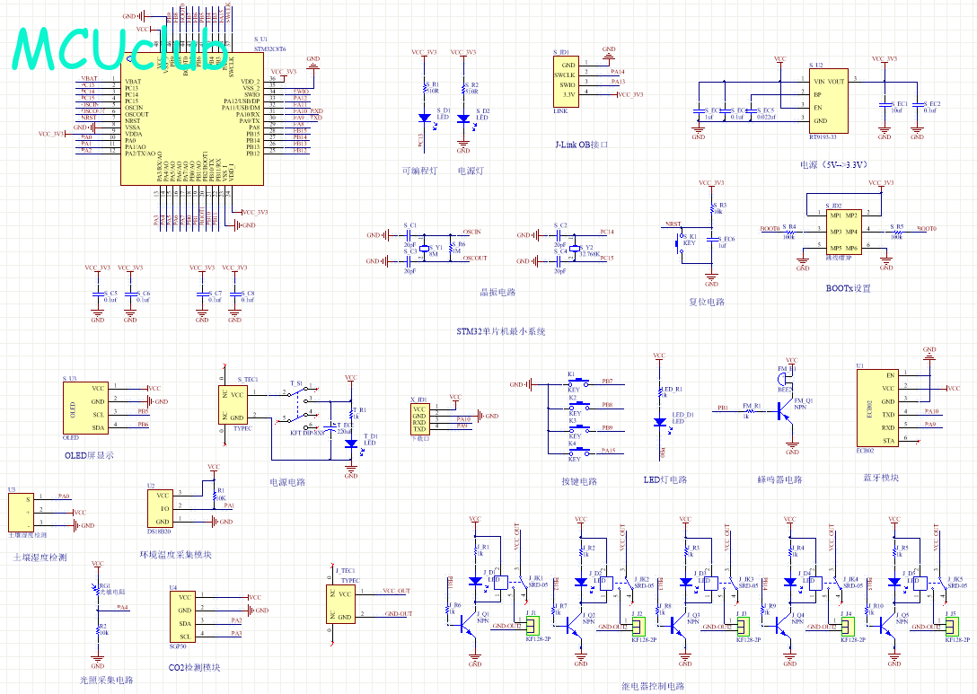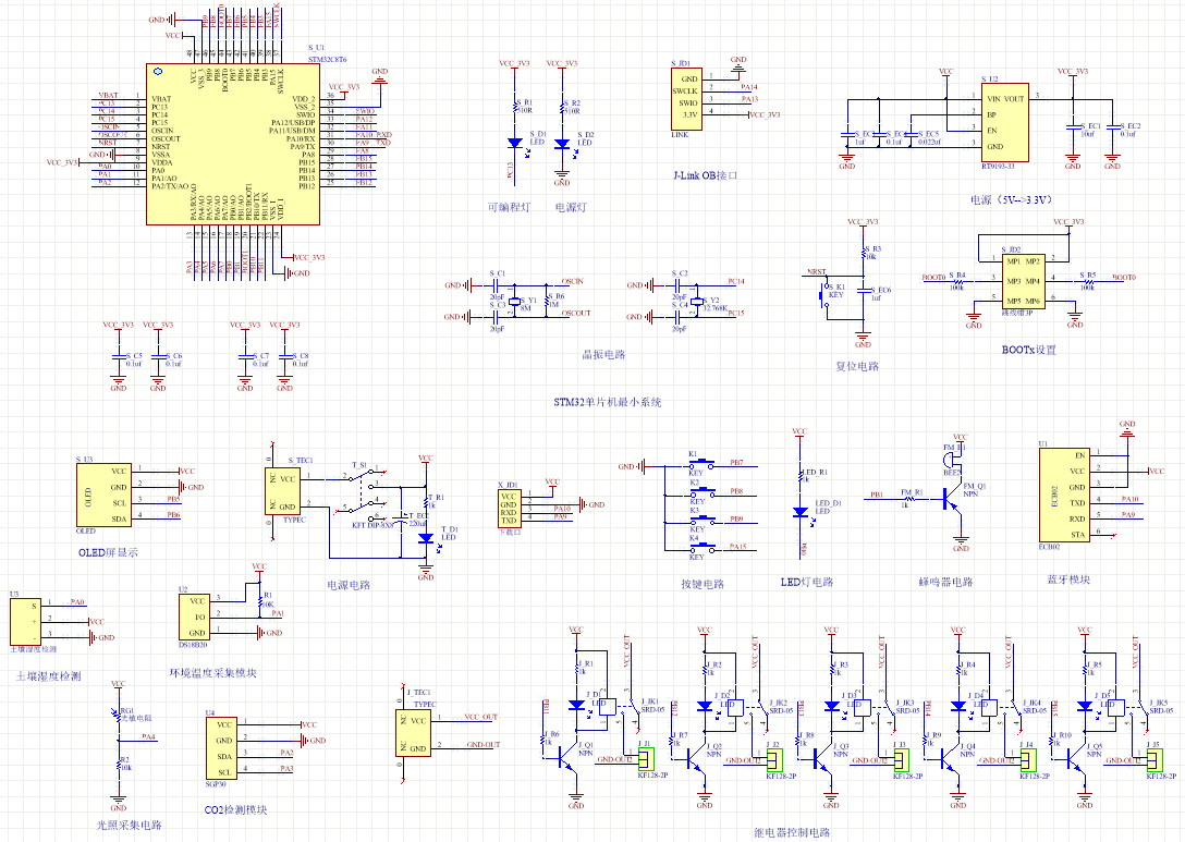 底板:底板在嘉立创进行打板,为绿色PCB板,两层板,厚度1.2,上下覆铜接地。元器件基本上为插针式,个别降压芯片会使用贴片式。
