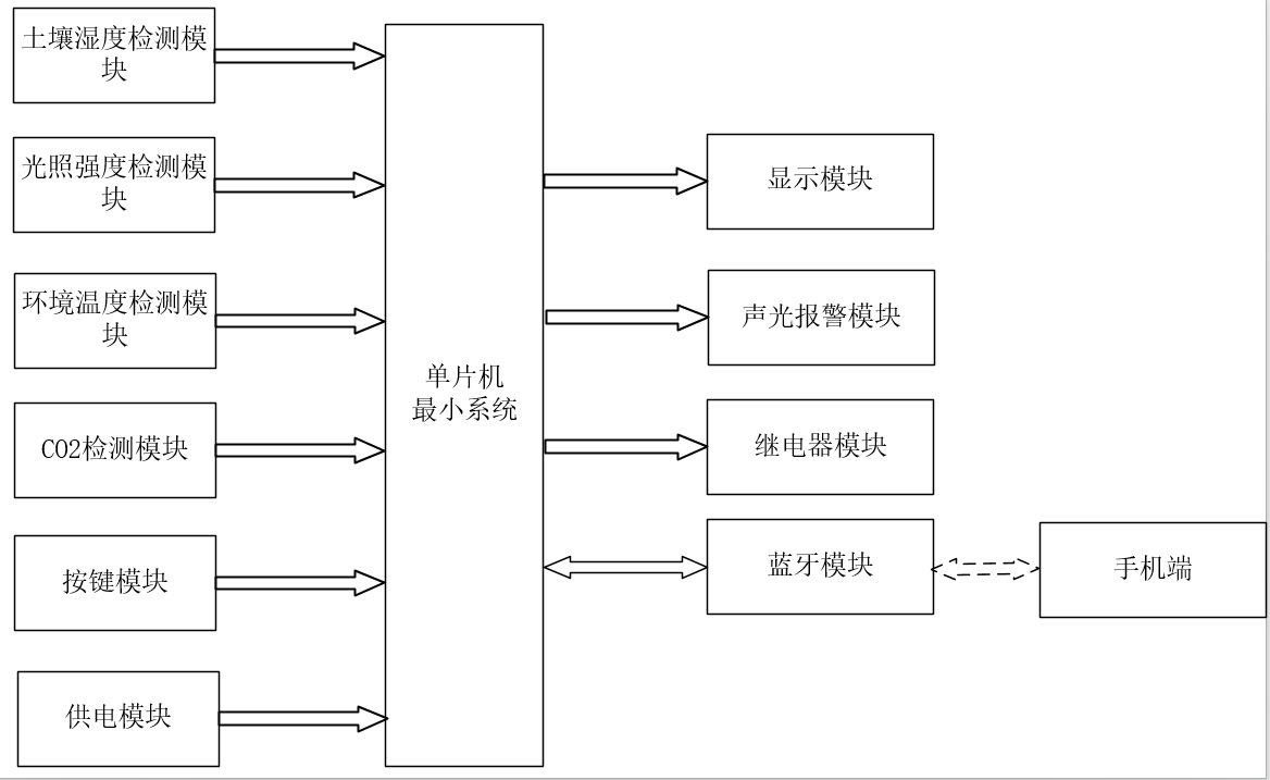 关键词:大棚环境;温度;湿度;CO2测控;光照强度;测控