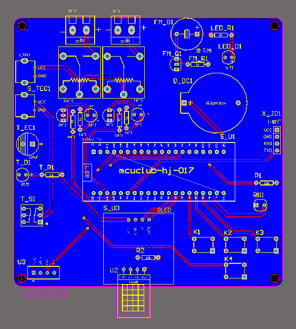 注意:PCB图中间有一个项目编号,隐藏在单片机底座下,插入单片机后不会看到。如果想截没有项目编号的PCB图,可在PCB源文件中点击删除。另外,如果想在实物PCB板上加自己的信息(比如日期、学号、姓名等),可联系客服。