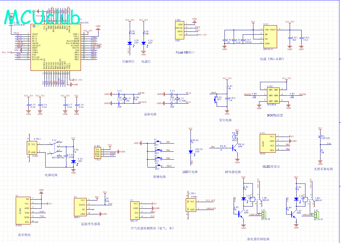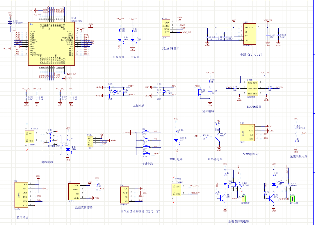 PCB图是由原理图导出,封装很大一部分都是作者自己绘制,不提供封装库,只提供连接好的源文件,可以直接在嘉立创进行打板。两层板,上下覆铜接地。