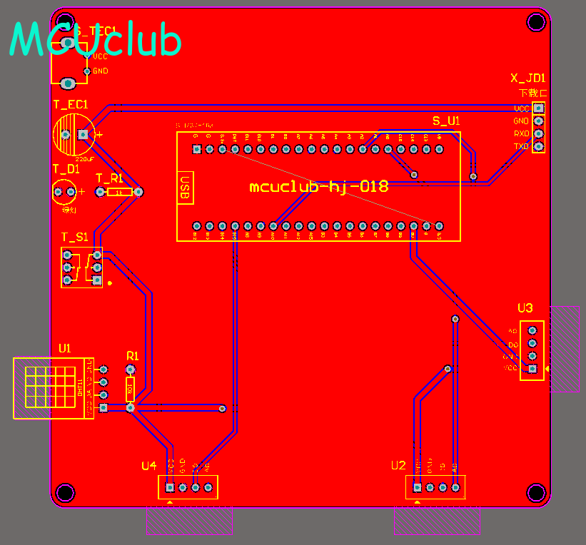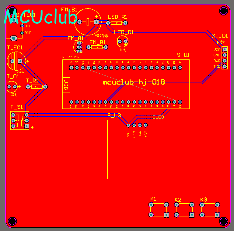 注意:PCB图中间有一个项目编号,隐藏在单片机底座下,插入单片机后不会看到。如果想截没有项目编号的PCB图,可在PCB源文件中点击删除。另外,如果想在实物PCB板上加自己的信息(比如日期、学号、姓名等),可联系客服。