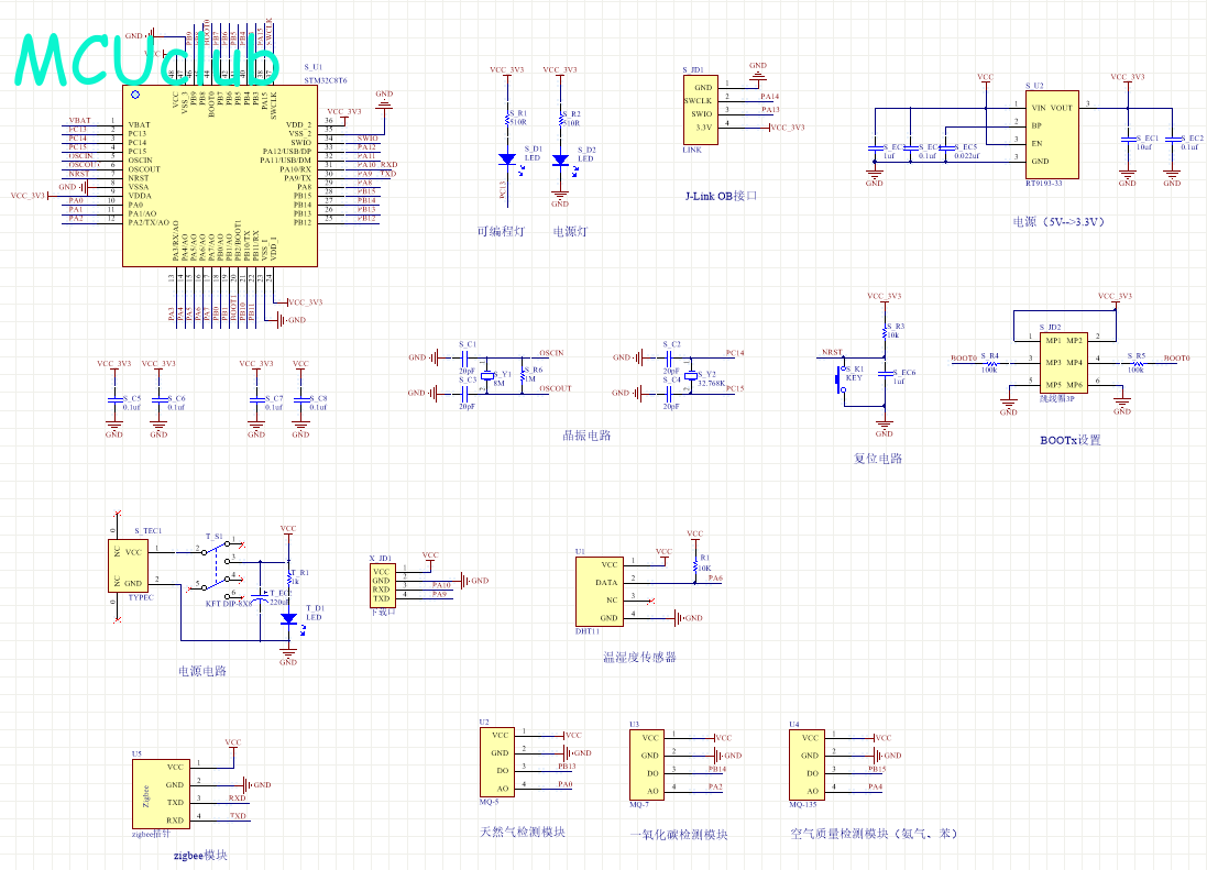 PCB图是由原理图导出,封装很大一部分都是作者自己绘制,不提供封装库,只提供连接好的源文件,可以直接在嘉立创进行打板。两层板,上下覆铜接地。