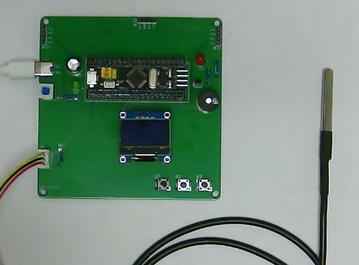 1、通过防水式DS18B20测量水温,当温度不在设定的上下限值之内时,进行声光报警