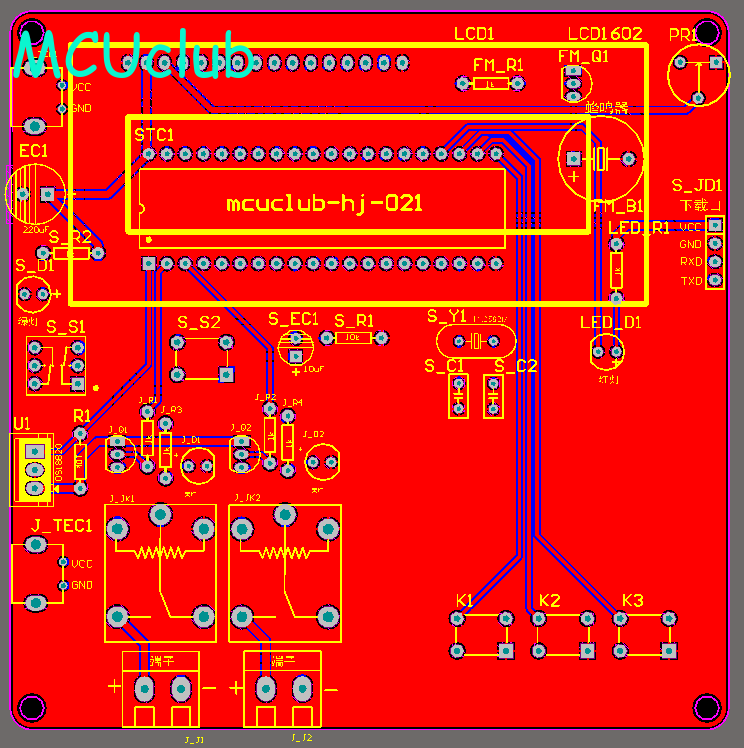 注意:PCB图中间有一个项目编号,隐藏在单片机底座下,插入单片机后不会看到。如果想截没有项目编号的PCB图,可在PCB源文件中点击删除。另外,如果想在实物PCB板上加自己的信息(比如日期、学号、姓名等),可联系客服。