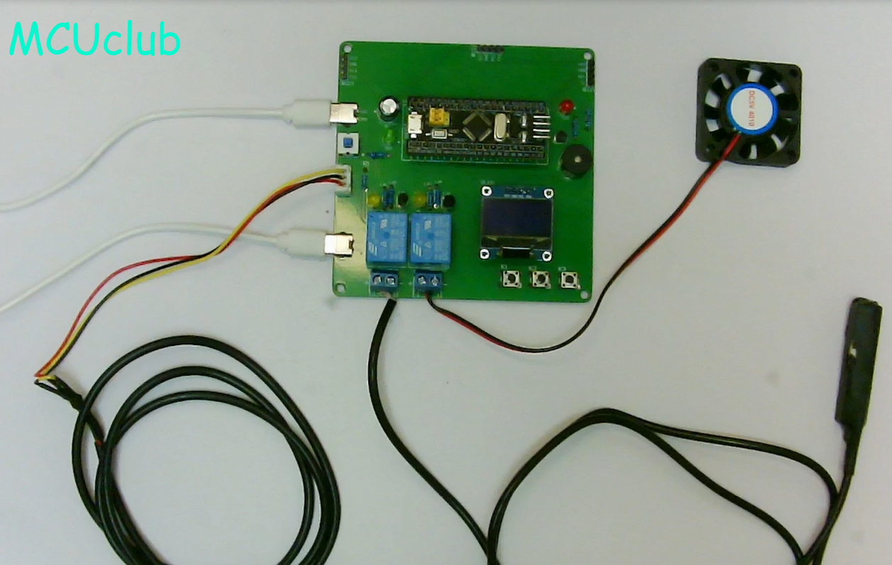1、通过防水式DS18B20测量水温,当温度不在设定的上下限值之内时,进行相应的加热(防水加热棒)或制冷(风扇),并进行声光报警