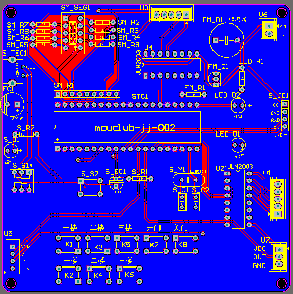 注意:PCB图中间有一个项目编号,隐藏在单片机底座下,插入单片机后不会看到。如果想截没有项目编号的PCB图,可在PCB源文件中点击删除。另外,如果想在实物PCB板上加自己的信息(比如日期、学号、姓名等),可联系客服。