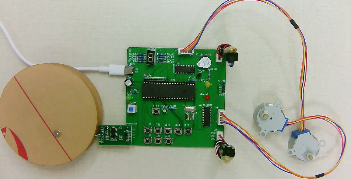 3、通过另一个四相步进电机模拟电梯升降,每转一圈,代表一层