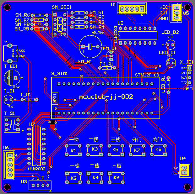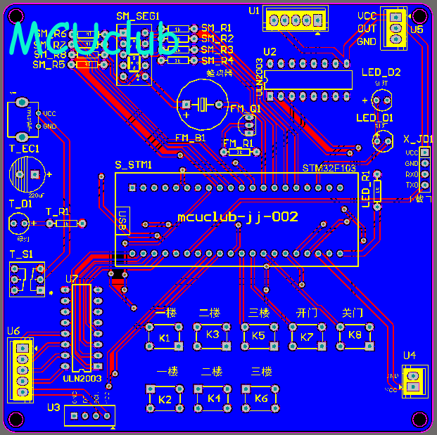 注意:PCB图中间有一个项目编号,隐藏在单片机底座下,插入单片机后不会看到。如果想截没有项目编号的PCB图,可在PCB源文件中点击删除。另外,如果想在实物PCB板上加自己的信息(比如日期、学号、姓名等),可联系客服。