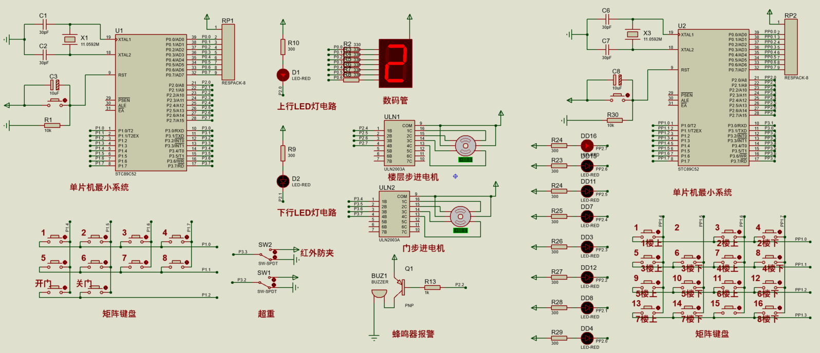 1、通过4*4矩阵键盘实现电梯外部的1-8层呼叫