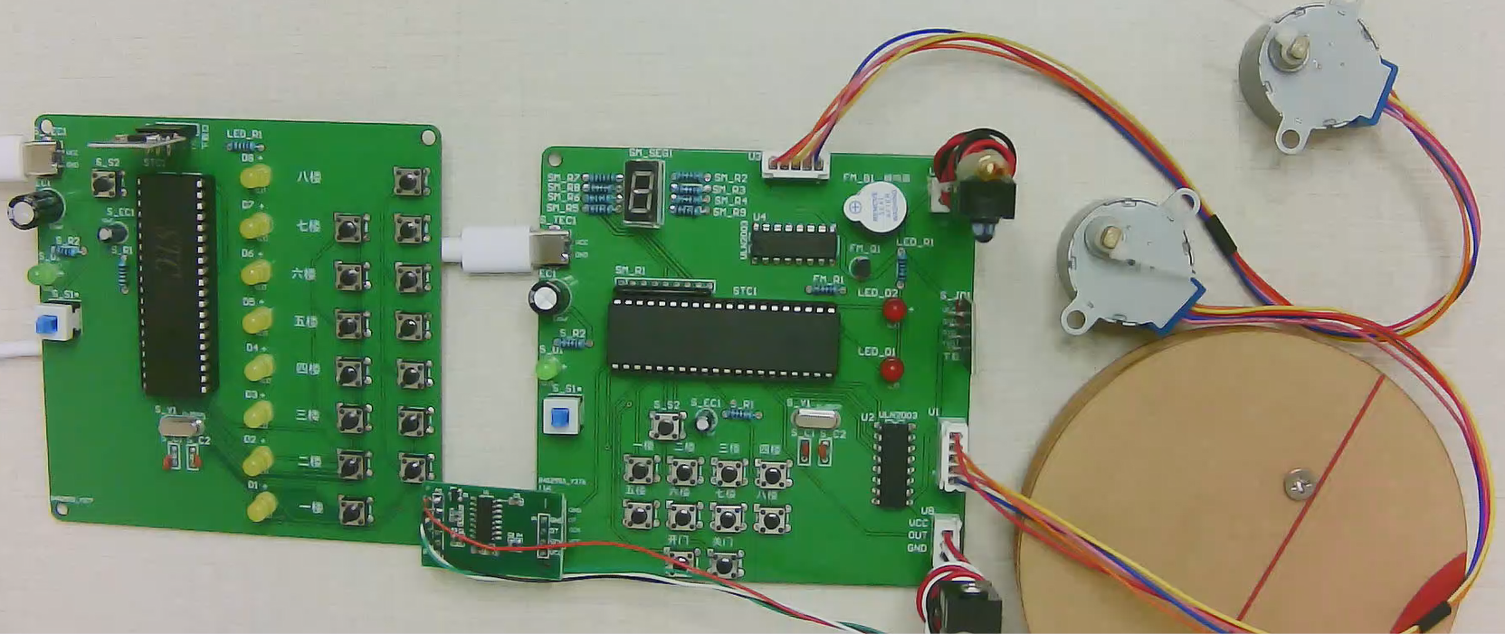 3、通过另一个四相步进电机模拟电梯升降,每转一圈,代表一层