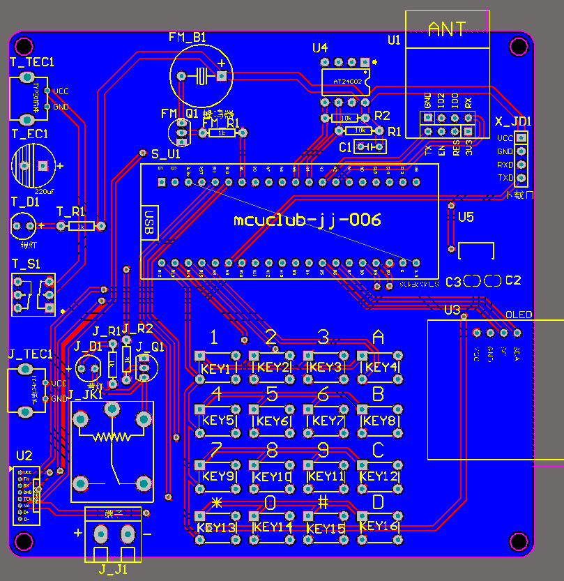注意:PCB图中间有一个项目编号,隐藏在单片机底座下,插入单片机后不会看到。如果想截没有项目编号的PCB图,可在PCB源文件中点击删除。另外,如果想在实物PCB板上加自己的信息(比如日期、学号、姓名等),可联系客服。