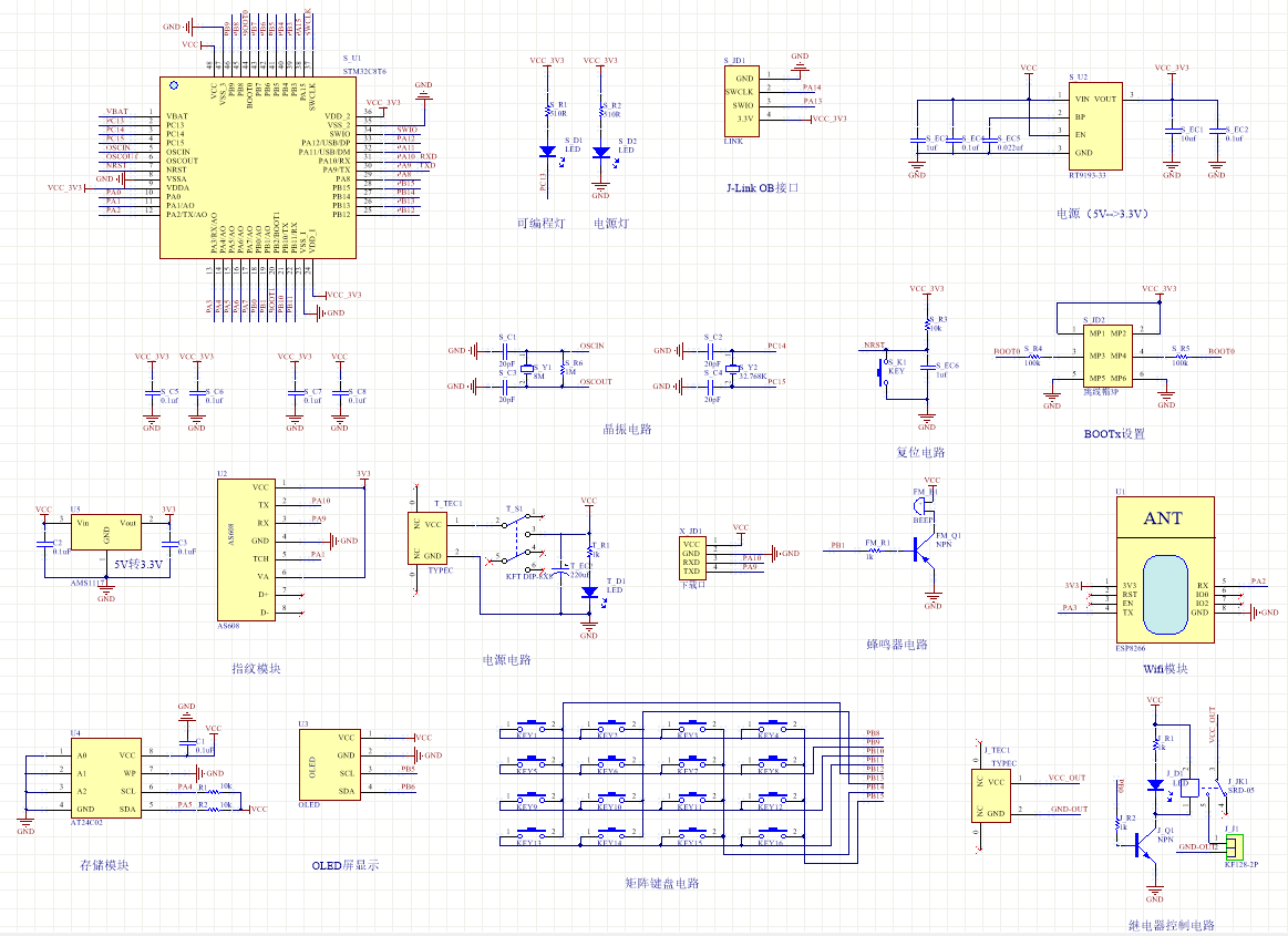 PCB图是由原理图导出,封装很大一部分都是作者自己绘制,不提供封装库,只提供连接好的源文件,可以直接在嘉立创进行打板。两层板,上下覆铜接地。