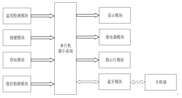 4、通过液位检测模块检测是否有水,如果没有水,则自动停止加热,防止干烧