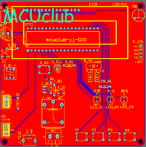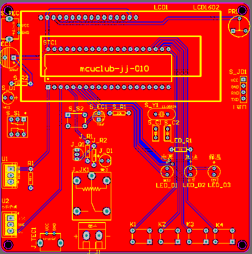 注意:PCB图中间有一个项目编号,隐藏在单片机底座下,插入单片机后不会看到。如果想截没有项目编号的PCB图,可在PCB源文件中点击删除。另外,如果想在实物PCB板上加自己的信息(比如日期、学号、姓名等),可联系客服。