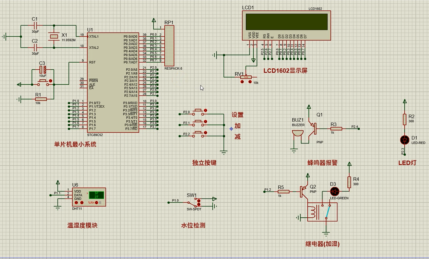 关键词:加湿器;STC89C52;DHT11;湿度传感器。