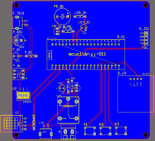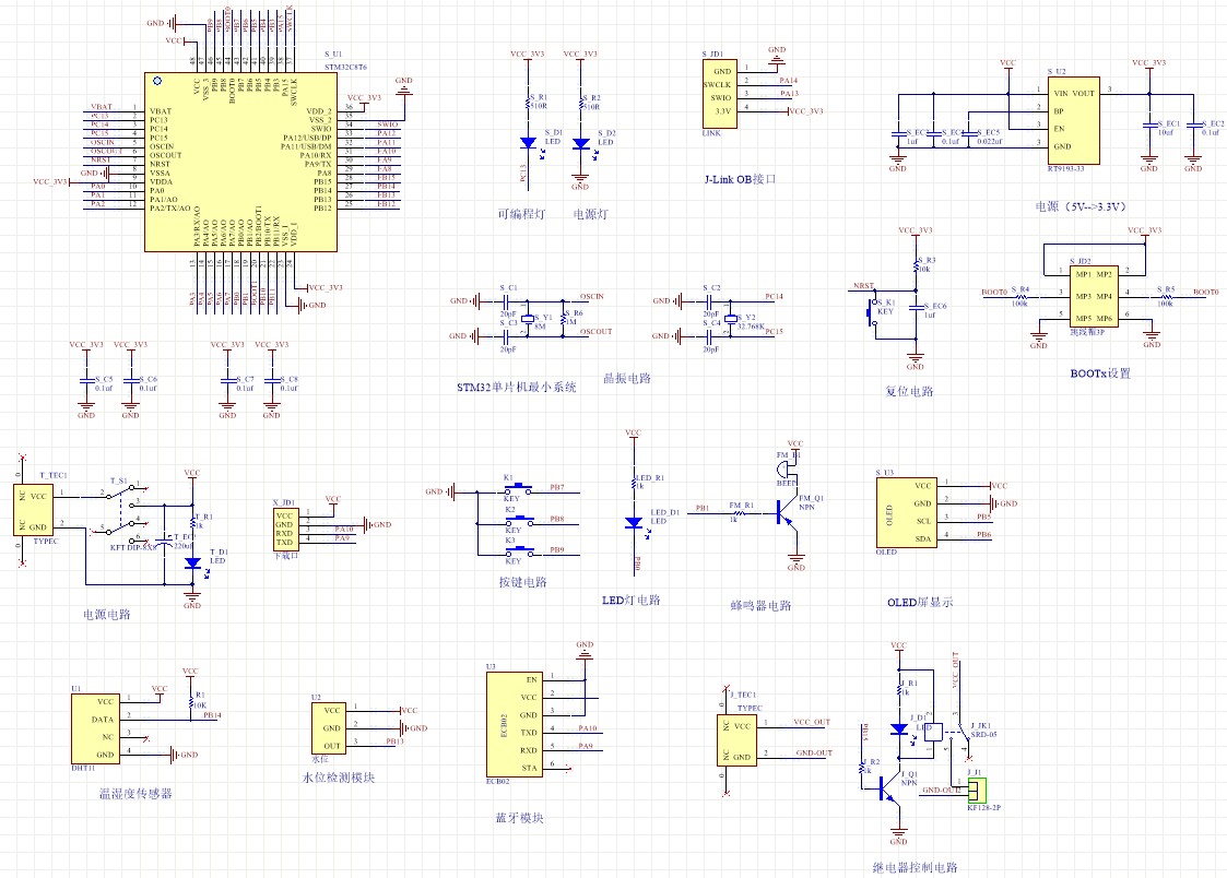 PCB图是由原理图导出,封装很大一部分都是作者自己绘制,不提供封装库,只提供连接好的源文件,可以直接在嘉立创进行打板。两层板,上下覆铜接地。