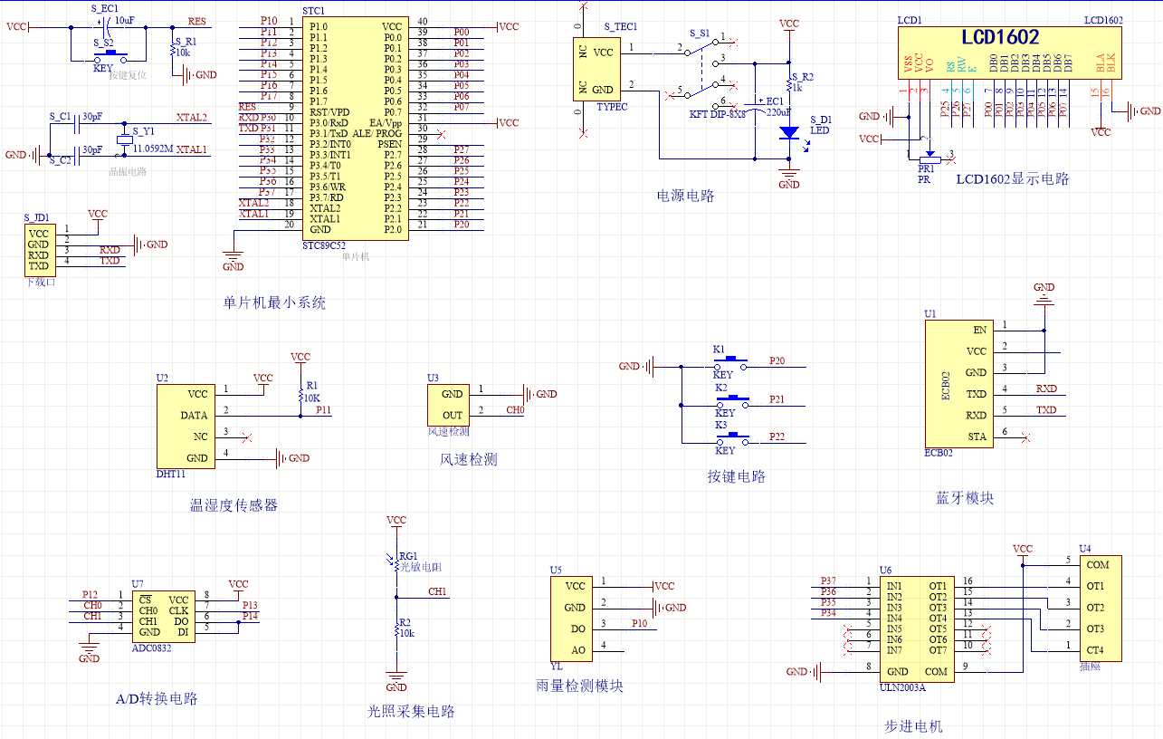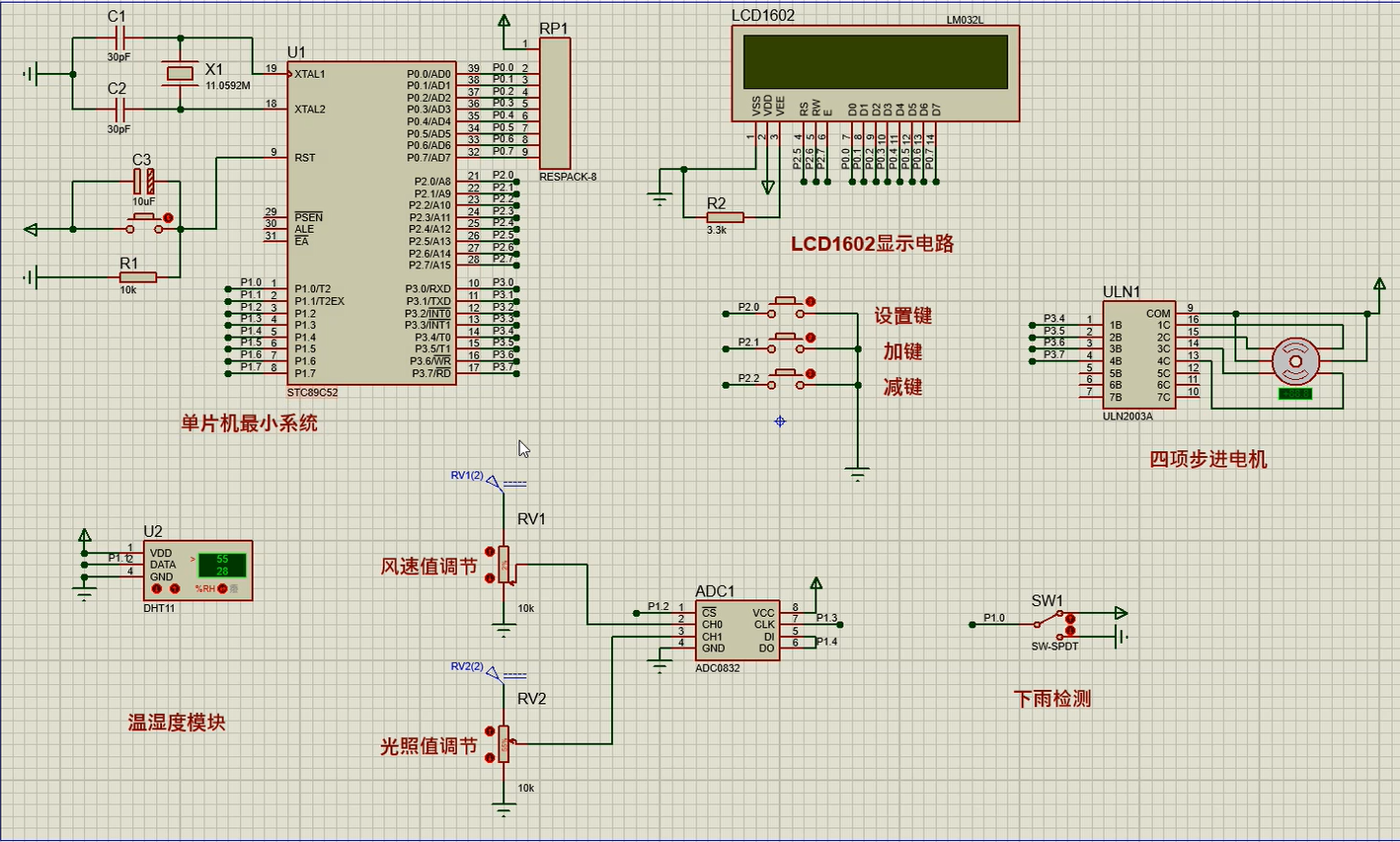关键词:智能晾衣架;光敏传感器;雨滴传感器;温湿度传感器;STC89C52单片机