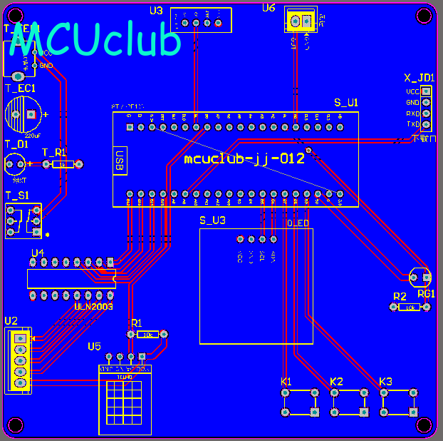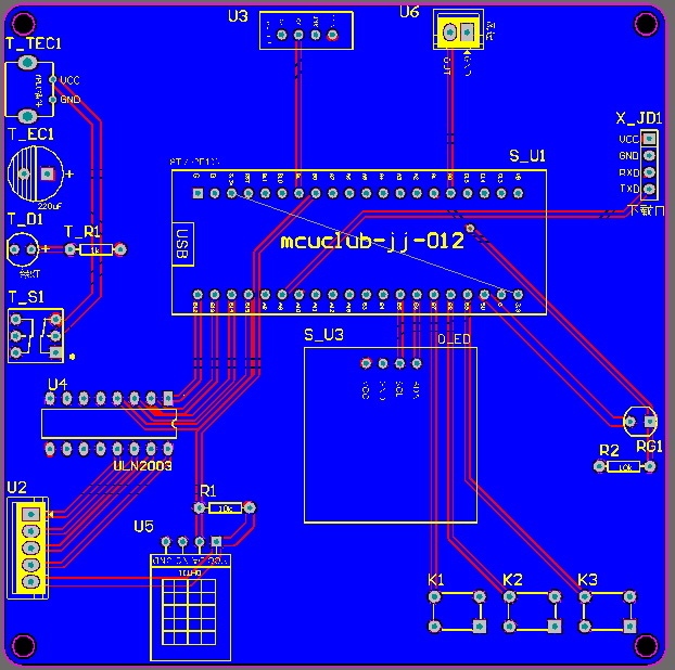 注意:PCB图中间有一个项目编号,隐藏在单片机底座下,插入单片机后不会看到。如果想截没有项目编号的PCB图,可在PCB源文件中点击删除。另外,如果想在实物PCB板上加自己的信息(比如日期、学号、姓名等),可联系客服。