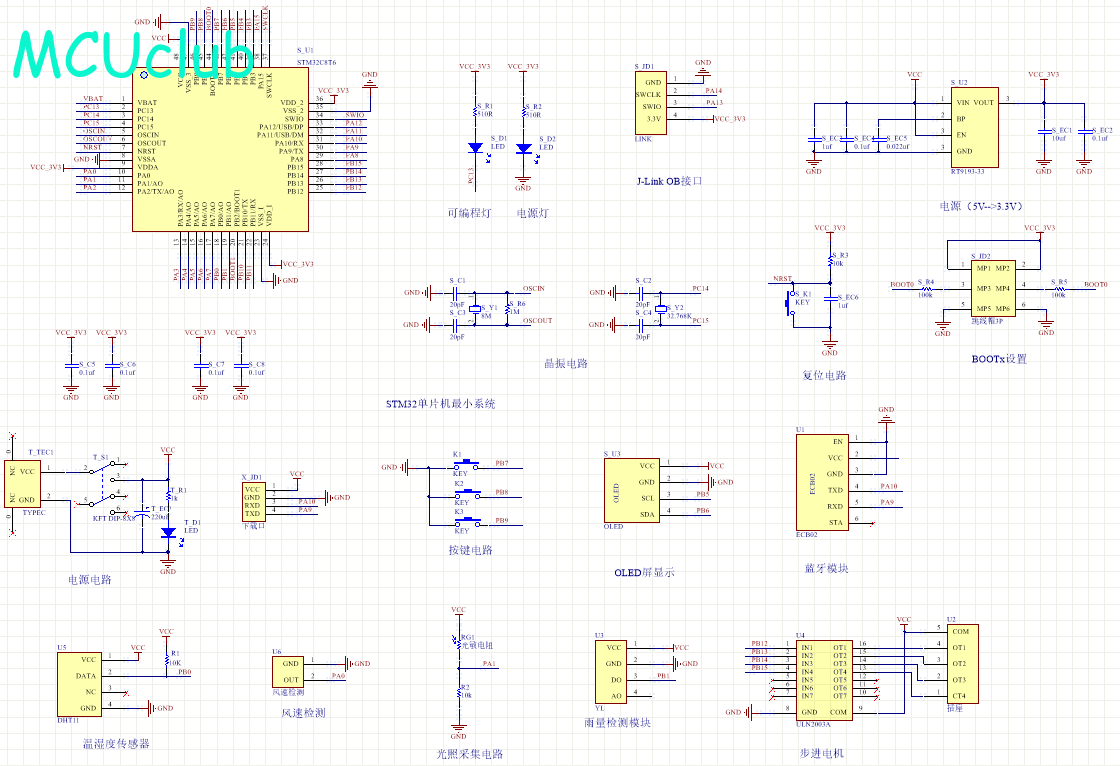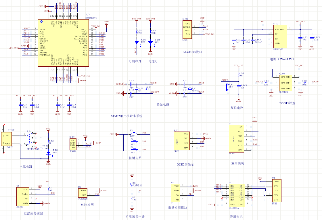 PCB图是由原理图导出,封装很大一部分都是作者自己绘制,不提供封装库,只提供连接好的源文件,可以直接在嘉立创进行打板。两层板,上下覆铜接地。