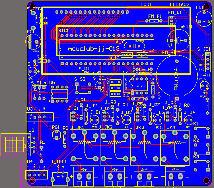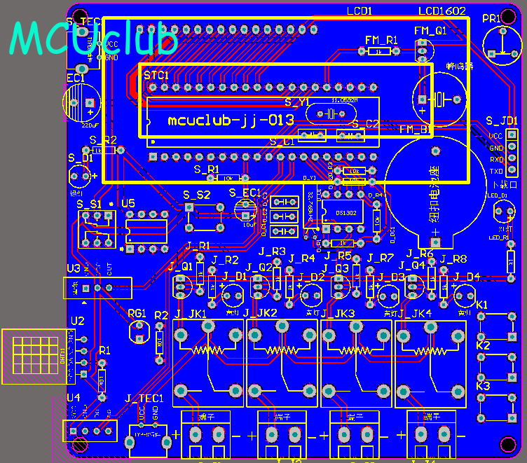 注意:PCB图中间有一个项目编号,隐藏在单片机底座下,插入单片机后不会看到。如果想截没有项目编号的PCB图,可在PCB源文件中点击删除。另外,如果想在实物PCB板上加自己的信息(比如日期、学号、姓名等),可联系客服。