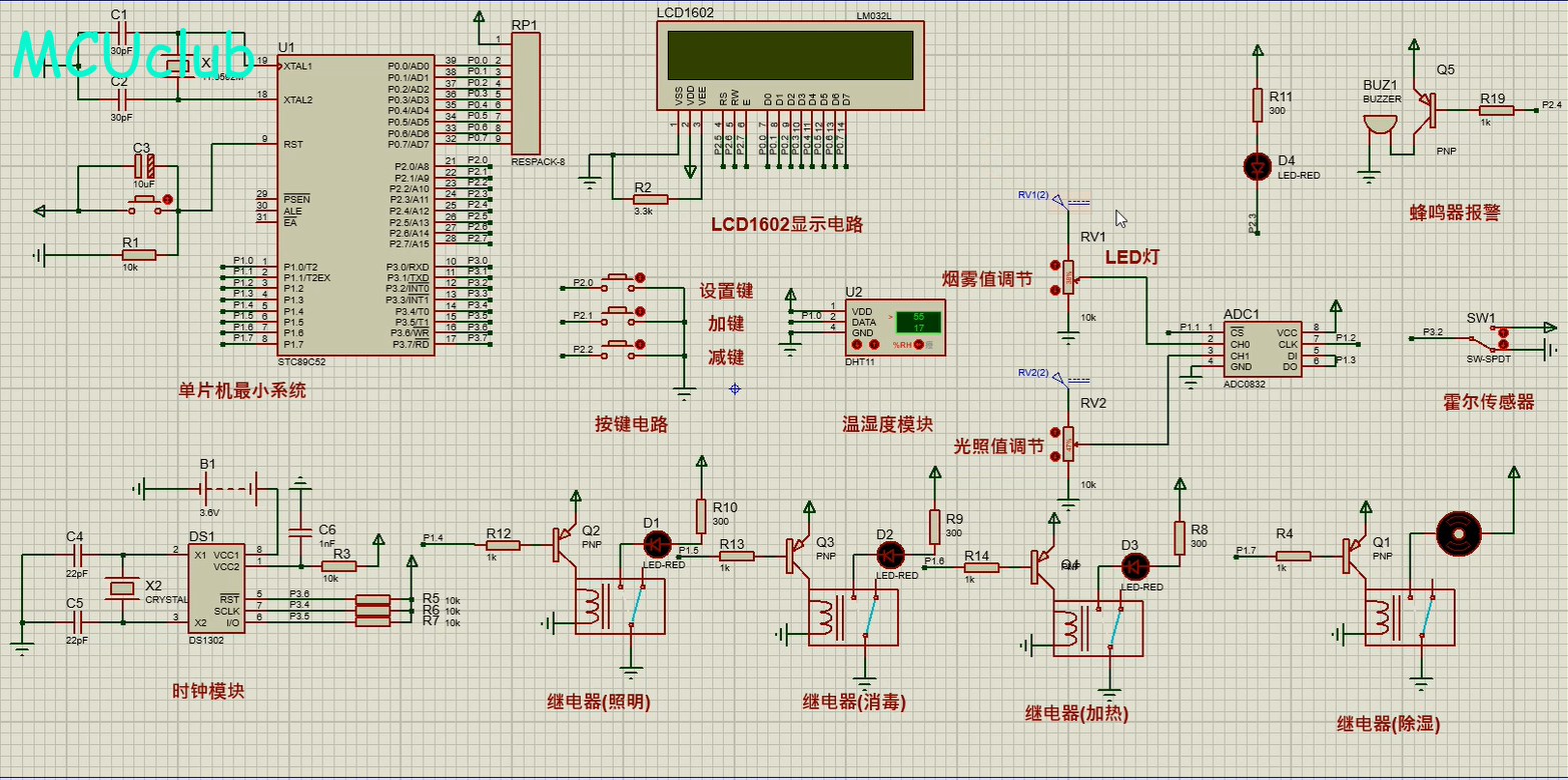 2、通过DS1302获取当前时间,并能定时进行衣柜内紫外线消毒;