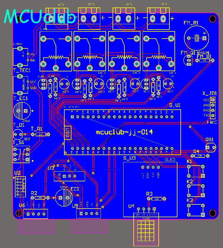 底板:底板在嘉立创进行打板,为绿色PCB板,两层板,厚度1.2,上下覆铜接地。元器件基本上为插针式,个别降压芯片会使用贴片式。
